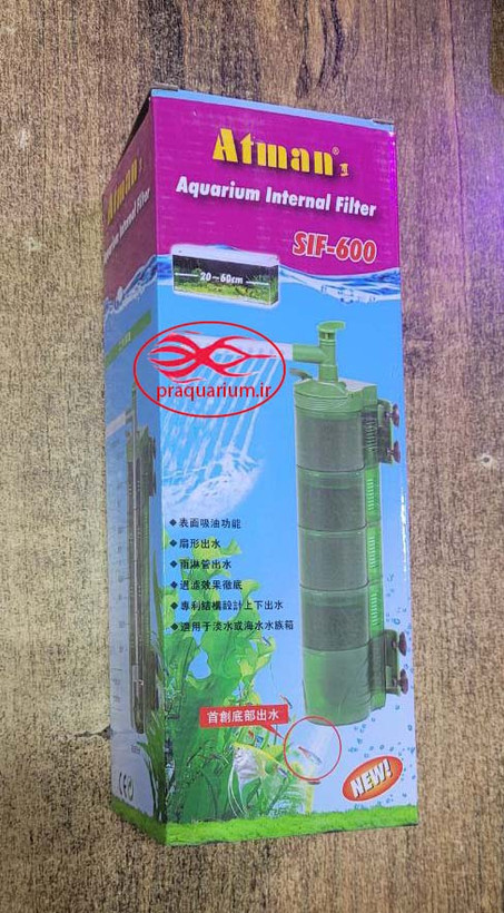 آتمن Atman یک برند شناخته شده در زمینه تجهیزات آکواریوم است و فیلتر آتمن SIF-600 یکی از تولیدات آن در سری فیلتر داخلی آکواریوم می باشد. نحوه کار کردن این فیلتر بدین شکل است که آب از طریق محفظه فیلتر توسط پمپ آب کشیده می شود و سپس به وسیله فیلتر تصفیه می شود.