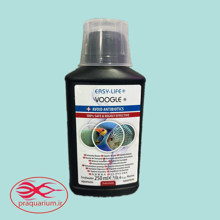 محلول voogle ایزی لایف محصولی جدید برای بالا بردن مقاومت ماهی ها و همچنین ساپورت سلامتی طبیعی آنها میباشد. بنابراین این محصول از استفاده انتی بیوتیک ها برای آبزیان جلوگیری میکند بنا بر این از بسیاری از مقاومت های دارویی که توسط انتی بیوتیک صورت میگیرد با استفاده از محلول voogle جلوگیری خواهد شد.