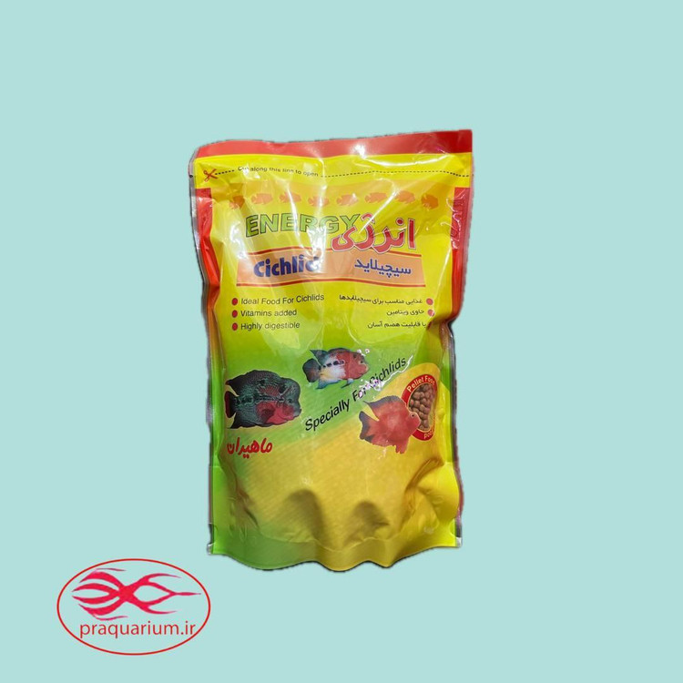 غذای ماهی انرژی سیچلاید 300 گرمی ، از دانه های درشت تری با مواد مرغوب، تهیه و تولید شده که از نظر اقتصادی نیز مقرون به صرفه می باشد.