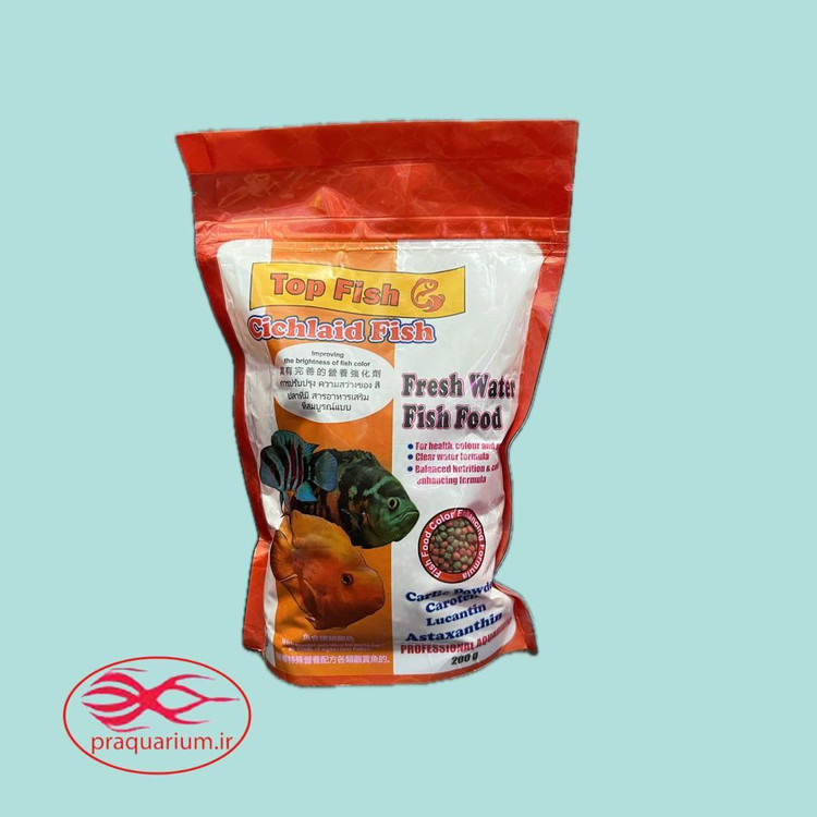 غذای ماهی تاپ فیش سیچیلاید وزن 200 گرم دارای فرمول غذایی خاص برای تمام ماهیان آکواریومی تولید و ارائه شده است.