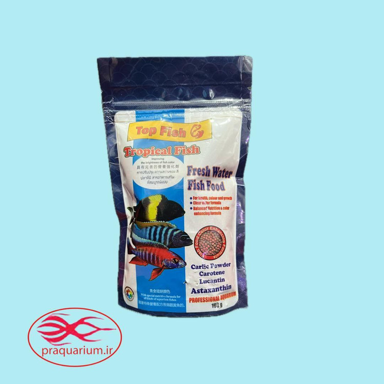 غذای ماهی تاپ فیش وزن 100 گرم دارای فرمول غذایی خاص برای تمام ماهیان آکواریومی تولید و ارائه شده است.